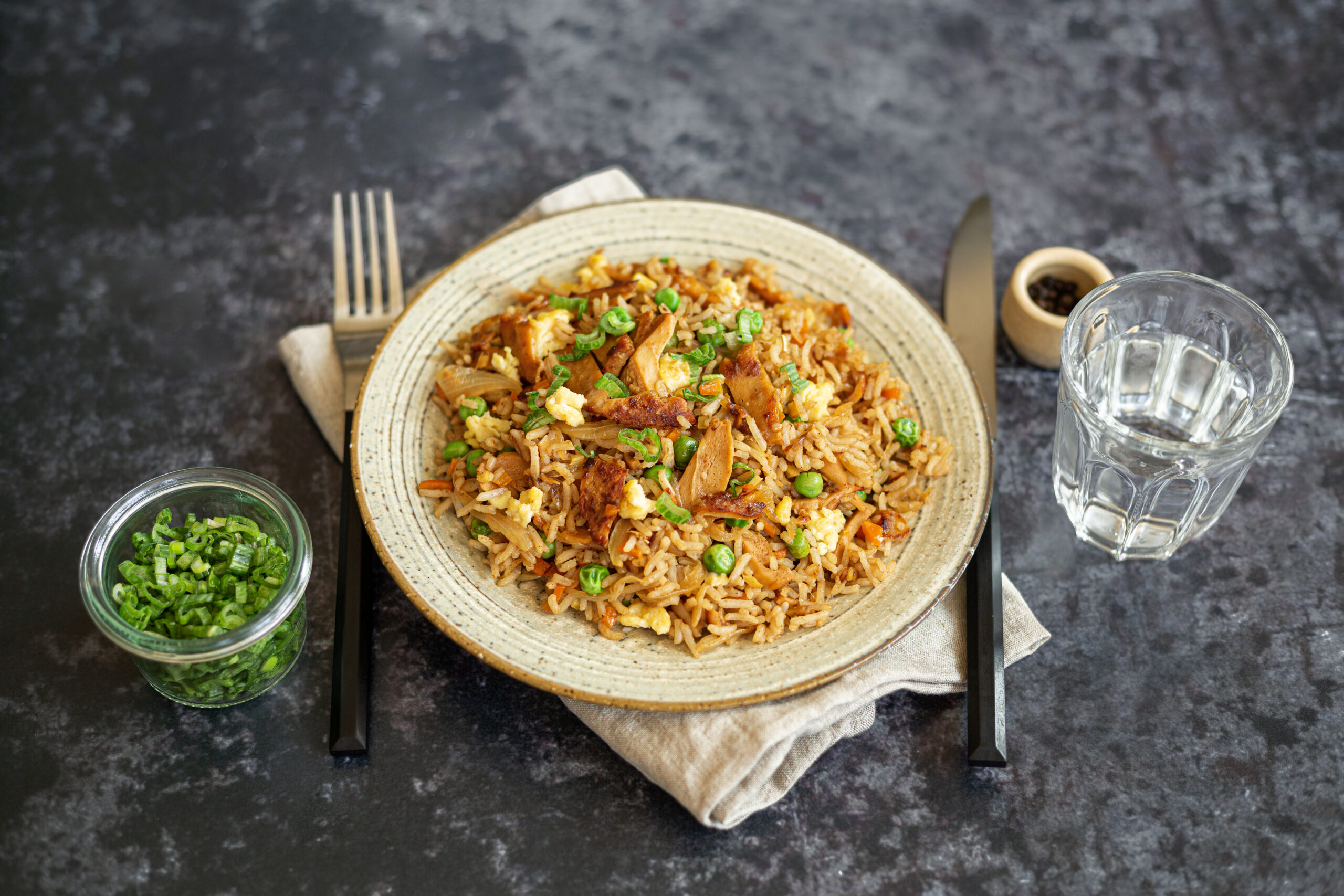 On part de protéines de pois et de blé, on les chauffe, on les presse, on les travaille jusqu’à obtenir des fibres qui se rapprochent de la viande. Ensuite on ajoute juste ce qu’il faut d’huile végétale, d’arômes naturels et d’assaisonnement… et la texture prend vie dans la poêle.