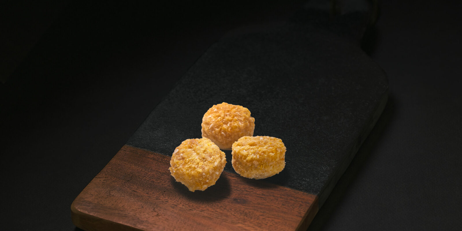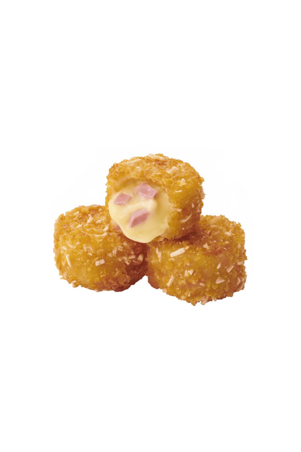 Potatoes, water, vegetable oils (sunflower, rapeseed) in varying proportions, corn flakes (corn, salt, sugar, barley malt extract), starches (wheat), plant-based proteins (wheat protein 3%, pea protein 0.7%), wheat flour, breadcrumbs (wheat flour, water, salt, yeast, colorants: paprika extract, curcumin), corn flour, wheat flakes, plant fibers (may contain wheat), dehydrated potato (potato, starch), natural flavors, salt, acidity regulators (lactic acid, citric acid), preservatives (potassium sorbate, buffered vinegar), stabilizer: methylcellulose, dehydrated onion, tomato powder, dextrose, radish concentrate, dehydrated garlic.