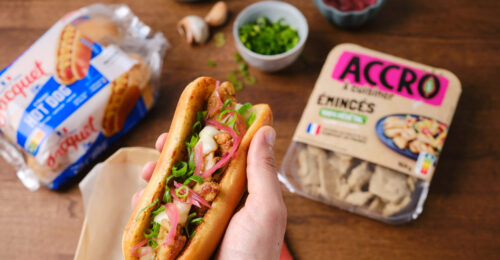 Nouveauté à croquer : le mini nem ACCRO, qu’on vous propose en version végé. On est restés au plus près de la recette traditionnelle, 100% croustillants, 100% savoureux, à partager (ou pas) à l’apéro, en entrée chaude ou en cœur d’assiette, c’est vous qui voyez. Disponible dès à présent au rayon frais.